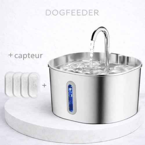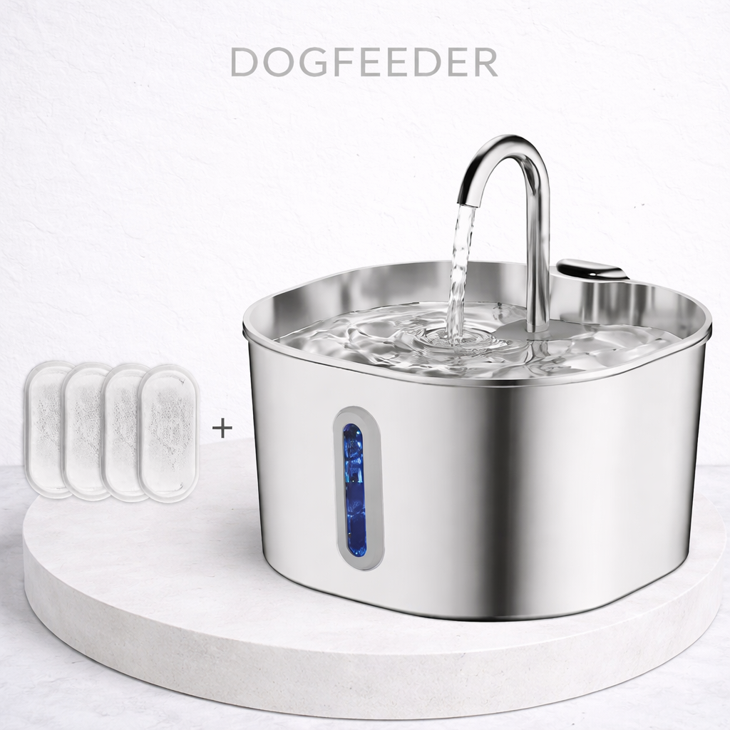 La fontaine Dogfeeder est conçue pour offrir à votre chien une eau toujours fraîche et propre, tout en améliorant son confort au quotidien. Grâce à son système de filtration performant et son design moderne en acier inoxydable, elle allie hygiène, sécurité et élégance dans votre intérieur.